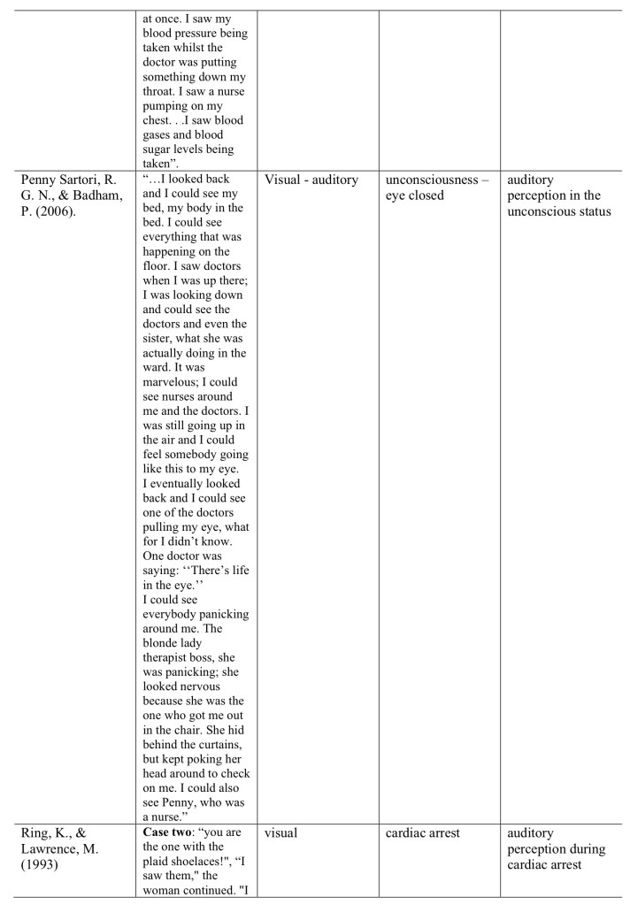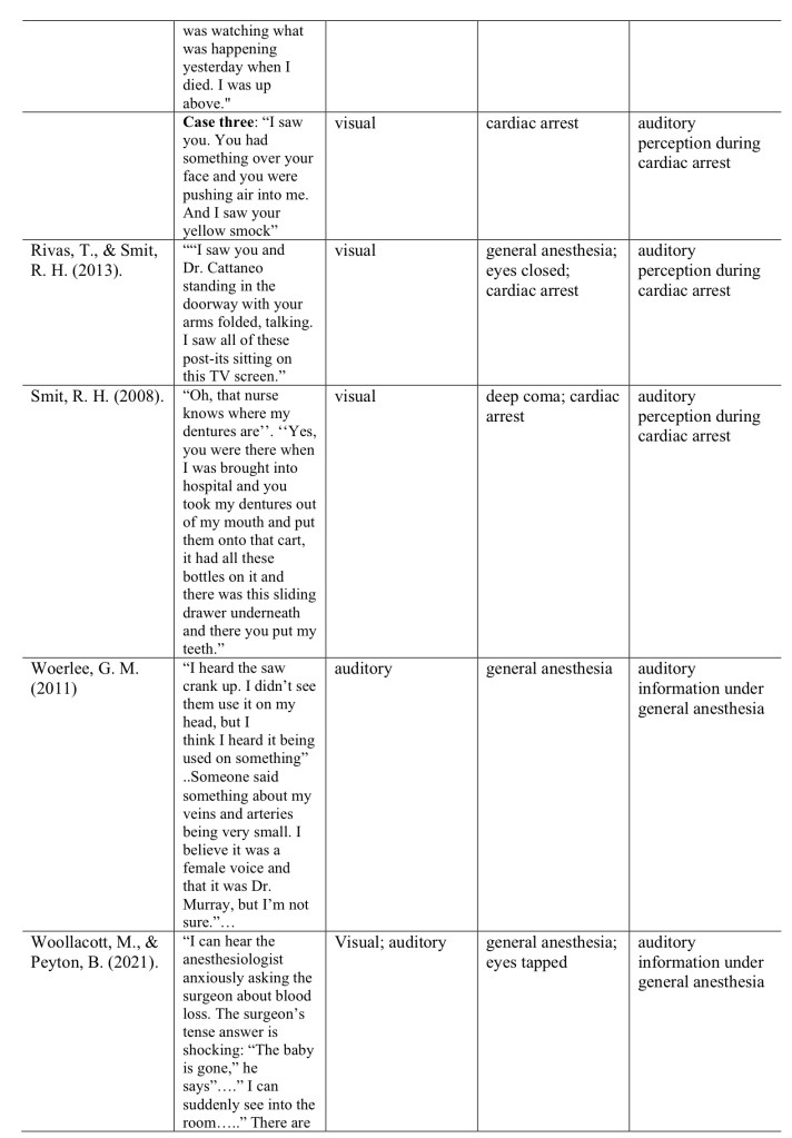 They aimed to review the current evidence of vNDEp and examine the likelihood that the reported perceptions could not have been attained via the material sensory organs (eg information of what was going on heard even though under anaesthesia).